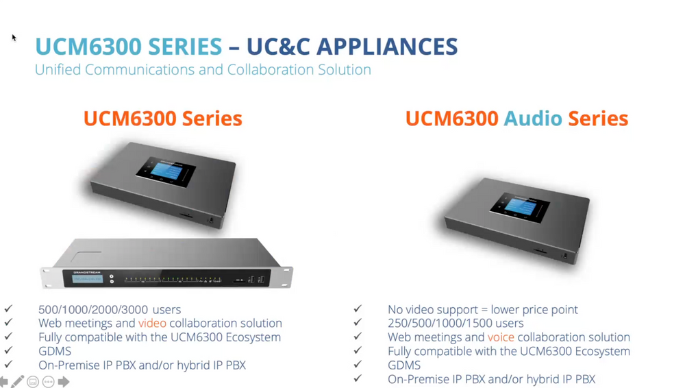 The UCM6300 Audio Series is able to pass video between endpoints, it just doesn’t have the video conferencing features.